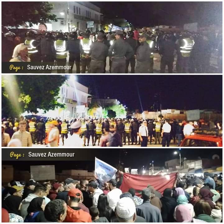 عرفت ،مدينة أزمور مساء يوم السبت 1 اكتوبر 2022 بمناسب موعد تنظيم وقفة ومسيرة احتجاجية ثانية دعى لها عدد من النشطاء ، إنزالا أمنيا كثيفا، حيث قامت قوات الأمن بتطويق مكان الإحتجاج أمام مسجد الزيتونة لمنع تحول الوقفة لمسيرة كما حدث الأسبوع الماضي.